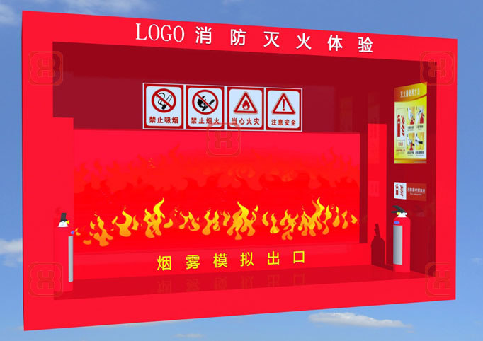 2、體驗(yàn)時打開遙控開關(guān),模擬火災(zāi)現(xiàn)場濃煙效果。使體驗(yàn)者能夠正確的使用各類滅火器。